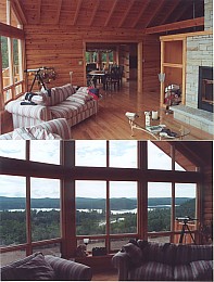 Neu eingerichtetes Blockhaus in den Bergregionen der Laurentians auf einem 565.000 qm großem Waldgrundstück mit dem Blick auf den Lac Mc Donald.